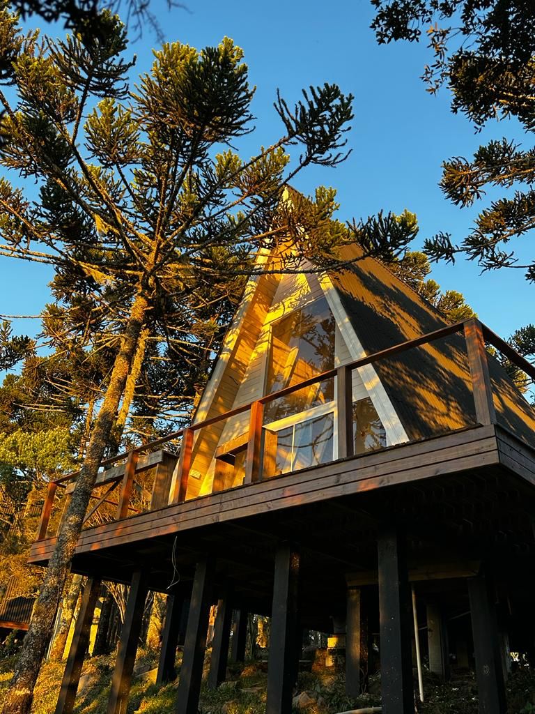 As cabanas em formato de A-Frame destacam-se na paisagem com sua arquitetura encantadora. Estética acolhedora que se integra perfeitamente à beleza natural do lugar. Seu design único não é apenas visualmente atraente, mas também funcional, proporcionando uma sensação de espaço e aconchego e conforto!